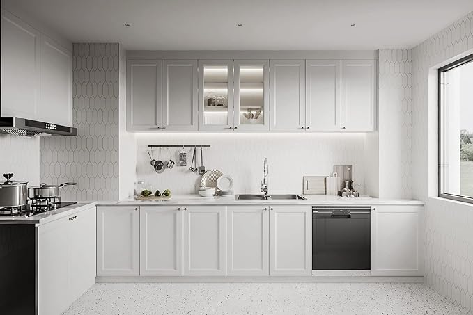 - [SIZE] -L32.8xW1.96ft/394inx23.6in, covers 64.29 sq.ft[COLOR] -White [MATERIAL] -Vinyl [LINES]-Embossed [WATERPROOF]-Easy to clean