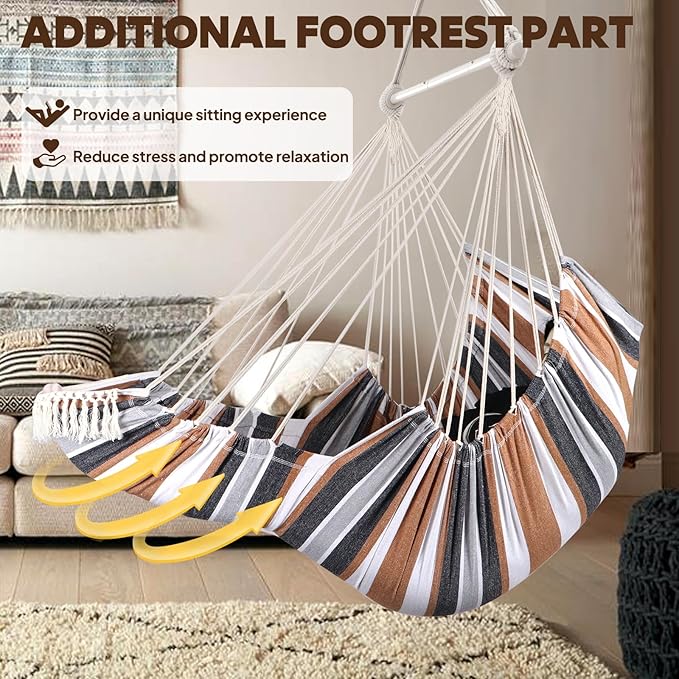 Chihee Hammock Chair Hanging Chair with Foot Rest 2 Cushions Max 500lbs Robust Metal Spreader Bar Collapsible Easy Storage Soft Cotton Swing Chair Strong Strap Iron Carabiner Side Pocket Included