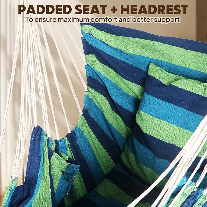 Chihee Hammock Chair Hanging Chair with Foot Rest 2 Cushions Max 500lbs Robust Metal Spreader Bar Collapsible Easy Storage Soft Cotton Swing Chair Strong Strap Iron Carabiner Side Pocket Included