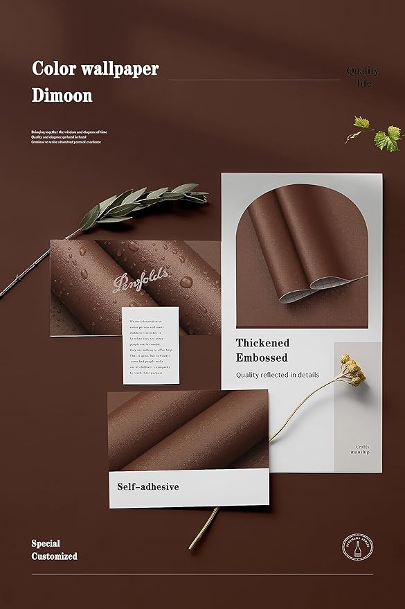 Dimoon 236''x17.7'' Brown Peel and Stick Wallpaper Contact Paper Modern Self Adhesive Wall Paper Removable Renter Friendly Textured Solid Color Shelf Cabinet Vinyl Roll (236''x17.7'',Orange Brown)