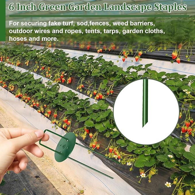 - STURDY AND DURABLE: High quality garden staple is made of green, non-toxic coated galvanised steel, which hides well from view on the lawn, it is also weather and rust resistant and heavy duty.