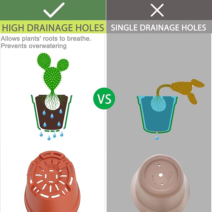 - [Small Planters with Drainage Holes] We improved the drainage holes, thickened the bottom, plants can breathe freely, prevent excessive watering, maintain soil drainage and ventilation, and ensure that plants do not rot roots. With trays to catch the extra water and keep the table clean.