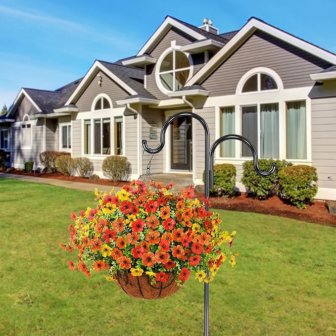 - UV-Resistant: Don't worry about fading โ these artificial hanging outdoor flowers are UV-resistant to keep their vibrancy in the sun.