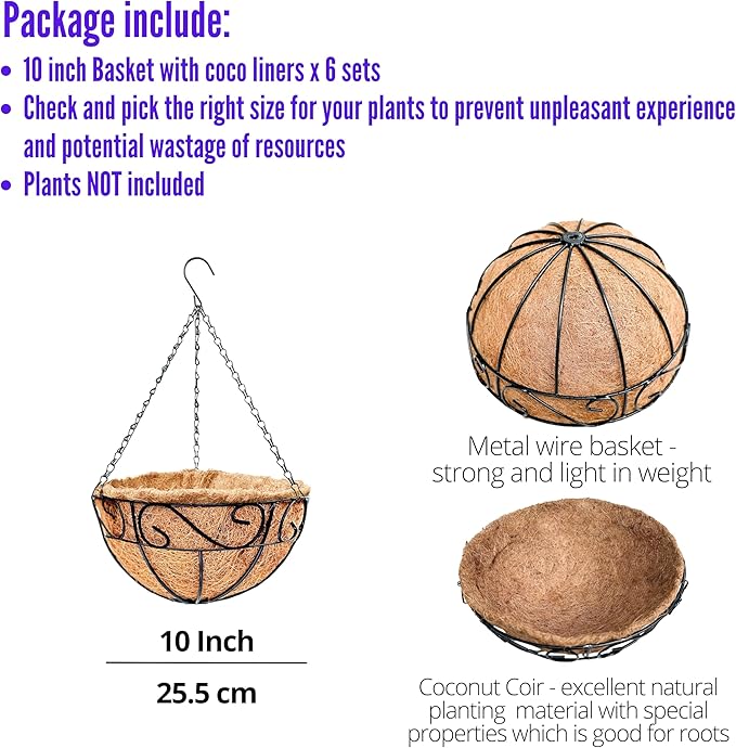 - SHOP WITH CONFIDENCE: USPTO DESIGN PATENT PENDING. Each hanging pot with coco coir liner is carefully inspected before shipping to ensure quality. If you encounter any issues or have a change of mind, you can return the baskets for a refund or exchange for a new set.