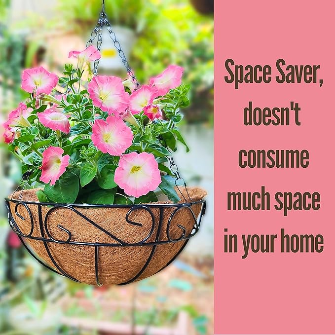 - MATERIAL FROM COCONUT: This hanging basket is filled with coco coir liners, which is excellent planting material for plants as it holds a good deal of water, provides superior drainage and good air ventilation for the roots