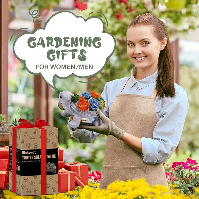 - Gardening Gifts for Grandma Mom: Not just for the outdoors! This cute turtle can also be used as unique and charming indoor decor or porch decor as long as it gets enough sunshine during the day. Keep the switch of the turtle figurine in the "ON" to brighten up rooms, desktops and windows with cheer and whimsy! Turtle decor dimensions: 7.5 "L x 4.4 "W x 4.4 "H