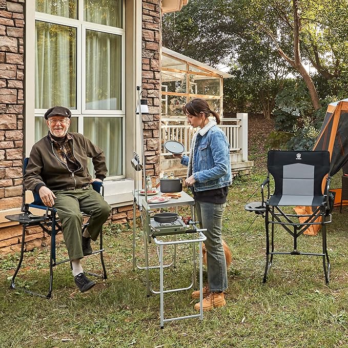 - 𝗦𝗜𝗗𝗘 𝗧𝗔𝗕𝗟𝗘 𝗔𝗡𝗗 𝗣𝗢𝗖𝗞𝗘𝗧𝗦: Functional side table with build-in cup holder and phone slot can keep important items like drinks, phones and anything else within reach. This camping chair is also featured with a side pocket, a great organizer for extra storage.