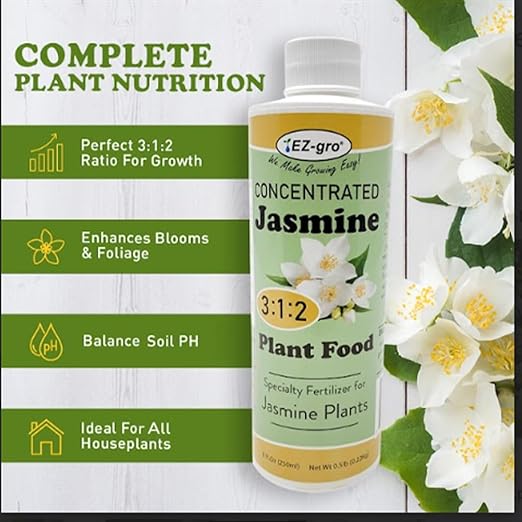 - Enhanced Growth: EZ-gro Liquid Jasmine Plant Fertilizer is a concentrated indoor plant fertilizer with a 3:1:2 nutrient ratio, perfect for Jasmine plants. This 8 oz bottle delivers the nutrients Jasmine and other tropical indoor plants need to thrive. Made in the USA for quality you can trust.
