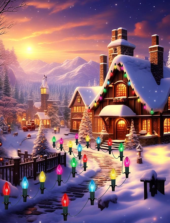 - ✨Practical and waterproof: C9 multicolor christmas string lights outdoor is hanging and plugging, Hang up C9 colorful string lights around your roofline decor or plug the C9 christmas driveway lights in lawn garden. christmas sidewalk lights crafted from weather-resistant materials, they are designed to withstand the elements, ensuring your pathways remain beautifully illuminated come rain, snow, or sunshine.