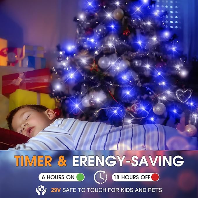 - Safer and More Efficient: Christmas LED Lights is powered by 29V low voltage output Plug with UL certified, and Low-temp LED bulbs ensure no overheat after long time using. Very safety for kids and pets even can hold it or hang it on their bodies. The LED beads not only do they consume a fraction of the energy , but they also boast a longer lifespan, saving your both energy and money in the long run. It's a win-win situation that combines eco-friendliness with cost-effectiveness.