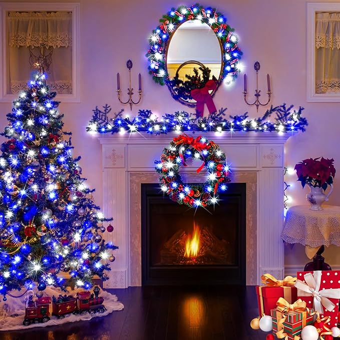 KNONEW 403FT 1000 LED Christmas Lights Outdoor String Light with 8 Modes and Timer Memory Waterproof Fairy Lights Decorations for Xmas Tree Yard Wedding Backdrop Decor(Blue and White)