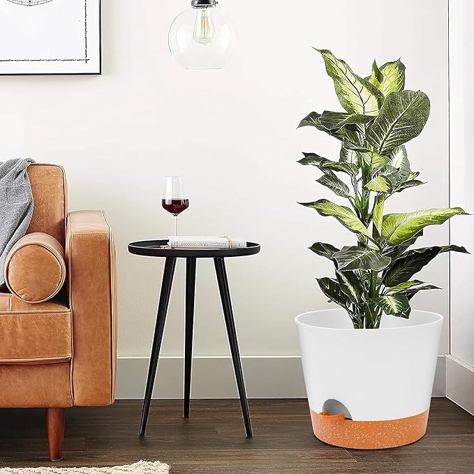 - 【Modern Simple Design】Pure white plant pot with brown bottom and matte finishing exterior, bringing out a modern minimalistic styled. the round planter pots are perfect for all small to medium-sized indoor house plants and herb spice gardens. Works well with orchid, cactus, succulents, aloe vera, basil, flowers, Peace Lily,air plants, snake plant.