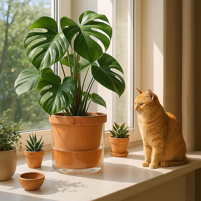 - Stylish Design with Perfect Combination – Newly designed self-watering pot with magical combination of terracotta succulent pot with a glass reservoir. Functional, attractive and stylish plant pot set.