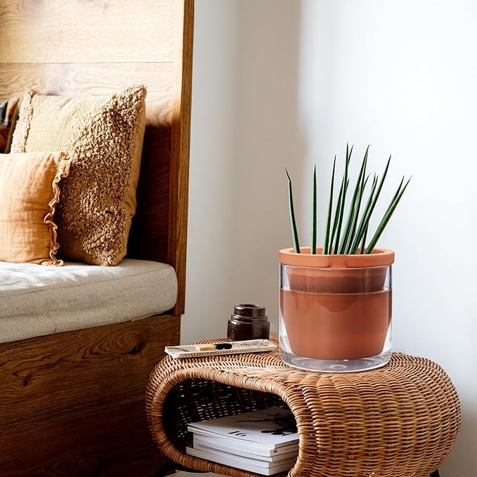 - Stylish Design with Perfect Combination – Newly designed self-watering pot with magical combination of terracotta succulent pot with a glass reservoir. Functional, attractive and stylish plant pot set.