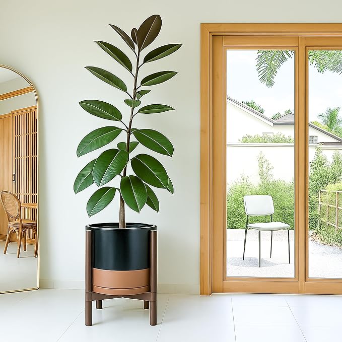 - A Complete Set: Mid-century ceramic planter, combined with a sculptural, solid wood stand that match perfectly together and looks great in anywhere.