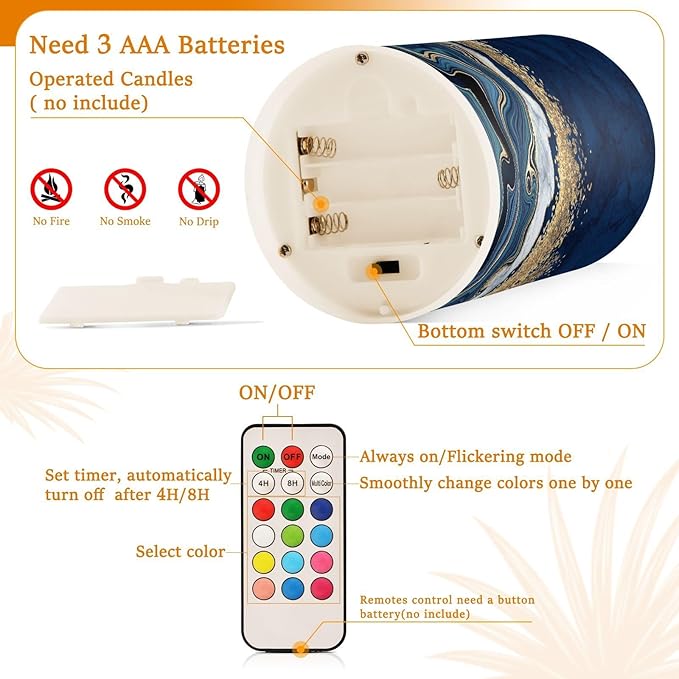 - Convenient Remote Functions: Includes an 18-key remote controller with a timer. You can control these candles remotely when they are placed somewhere difficult to touch. Set 4H/8H timers will save you trouble turning them on/off, they will come back on automatically at the same time every day. Also, you can adjust the light color as you want