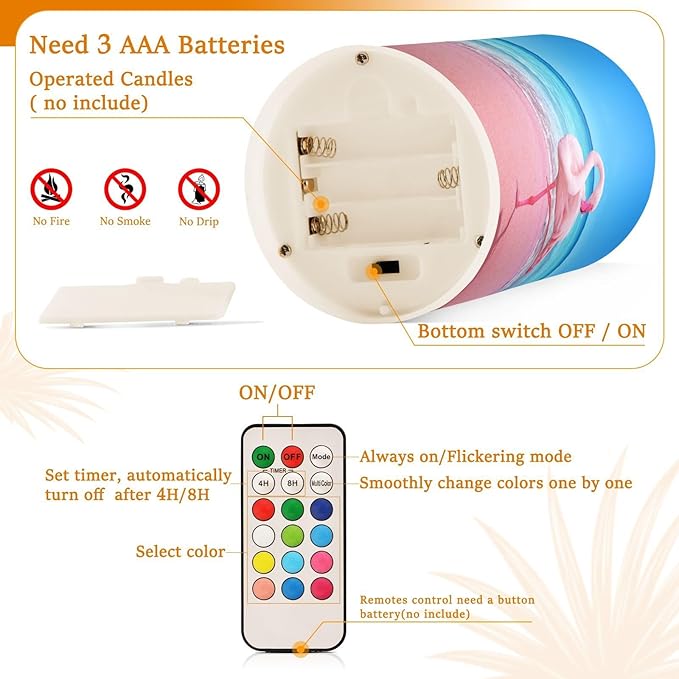- Convenient Remote Functions: Includes an 18-key remote controller with a timer. You can control these candles remotely when they are placed somewhere difficult to touch. Set 4H/8H timers will save you trouble turning them on/off, they will come back on automatically at the same time every day. Also, you can adjust the light color as you want