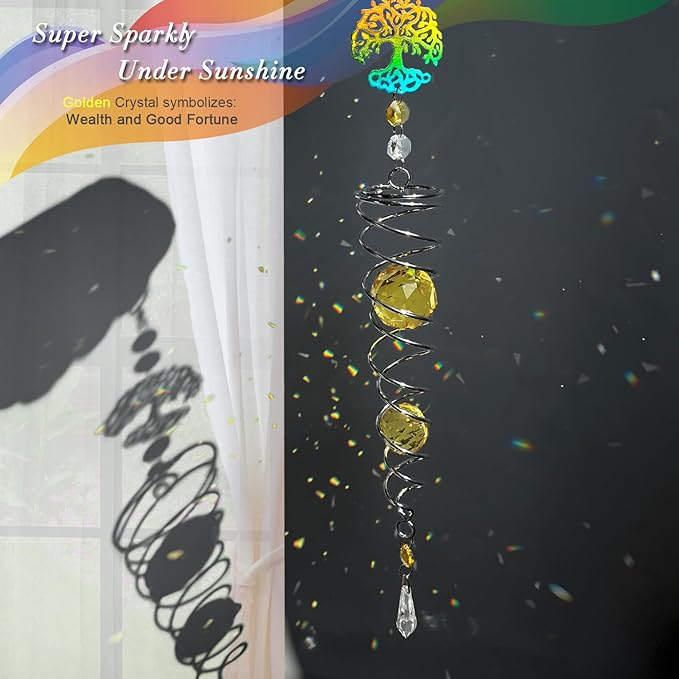 - 【PREMIUM CRYSTAL SUNCATCHER】The spiral with crystal is a special sun catcher rainbow maker, it’s Super Sparkly under sunshine. You can also add a motor(not include) to let the spiral to spin ,while spiral tail rotating (it can’t spin by itself.), the crystal ball seems to move up and down like floating and dancing in air, presents the magical visual illusion.
