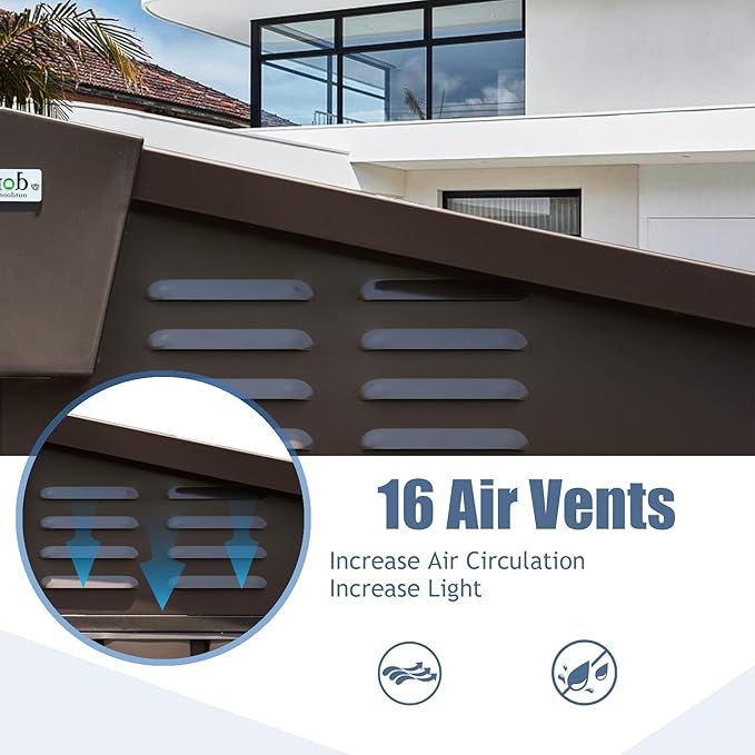 - 🏡Gable Sloping Roof Design - The sloped roof also prevents rainwater harvesting and rust prevention. Perfect for the garden, backyard, patio.