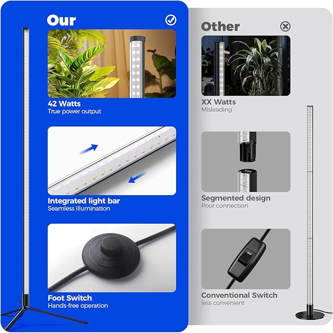 - Simple and Quick Installation: Designed for convenience, our grow light can be effortlessly set up. Just connect the stand to the light, plug in the power, and switch it on