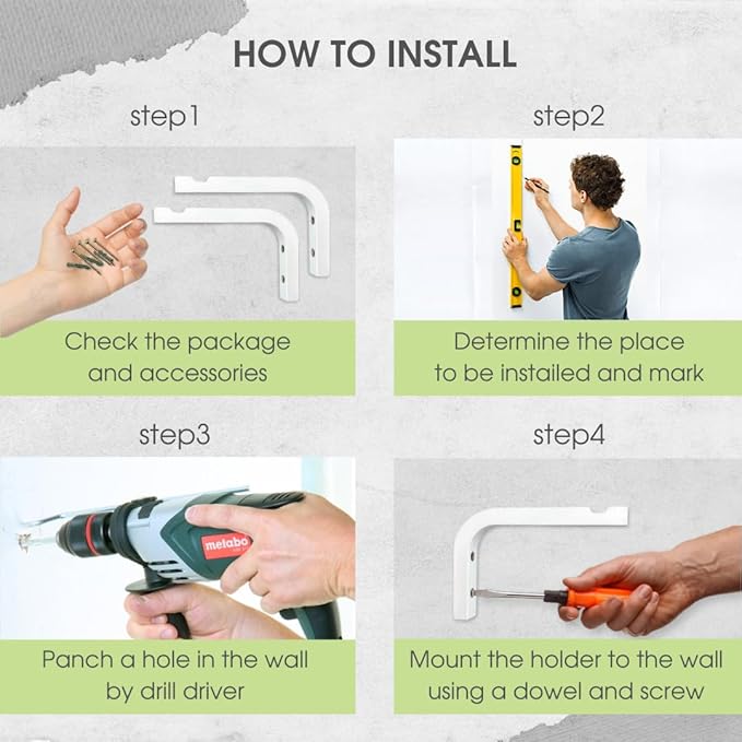 - EASY INSTALLATION: With the included hardware and easy straightforward instructions, mounting our plant hanging bracket for wall is a breeze. Our hooks for plants comes come with 4 screws, 4 dowels and 4 self-adhesive screw covers for installation.