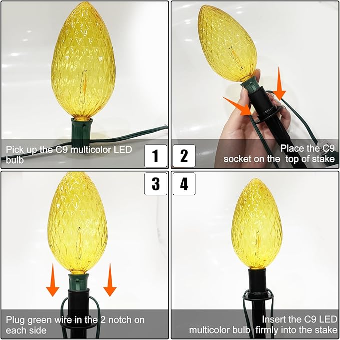 - Safe and Energy Efficient: The Christmas sidewalk lights with 8 C9 colored LED bulbs that are UL certified for interior and exterior decoration and lighting. E17/C9 candlestick socket base If the light bulb goes out, it will not affect other light bulbs.