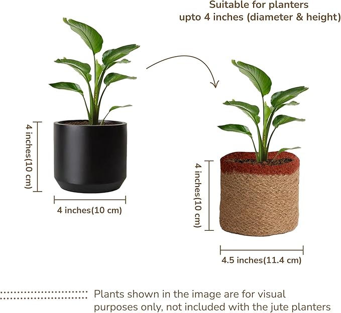 - [FITS 4" POTS - CHECK POT DIAMETER & HEIGHT]: These jute plant baskets are designed to accommodate plant pots up to 4 inches in diameter and height, making them perfect for indoor or balcony use. They are lightweight and portable for easy rearranging. PLEASE CAREFULLY CHECK THE DIAMETER AND HEIGHT OF YOUR POTS BEFORE ORDERING TO ENSURE A PROPER FIT.