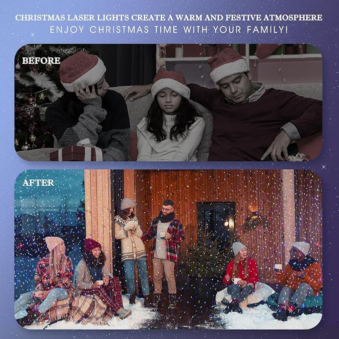 - Christmas lights outdoor: This outdoor light for house enhances your holiday celebrations,creating a beautiful laster light show. It can also light up your Christmas parties, decorate your home, and as a Christmas gift.