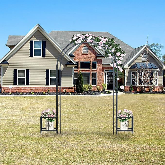 88in Steel Garden Arch Arbor Trellis with Planter Boxes for Climbing Plants Outdoor, Yard, Wide Sturdy Durable Garden Arch for Lawn,Outdoor Wedding Arch(Black)