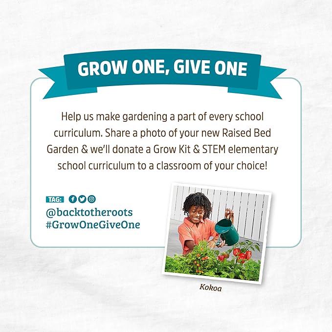 - #GROWONEGIVEONE โ share a photo of garden with #GrowOneGiveOne and we'll donate an organic gardening kit + STEM curriculum to an elementary school classroom of your choice!