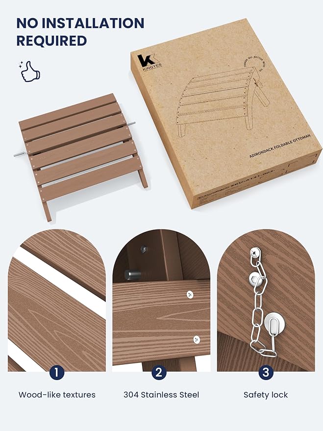 - [Instant Comfort]: No assembly required for the KINGYES Adirondack Footstool. Unbox and enjoy immediate relaxation with this portable and convenient footrest, designed for seamless integration into your outdoor living space.