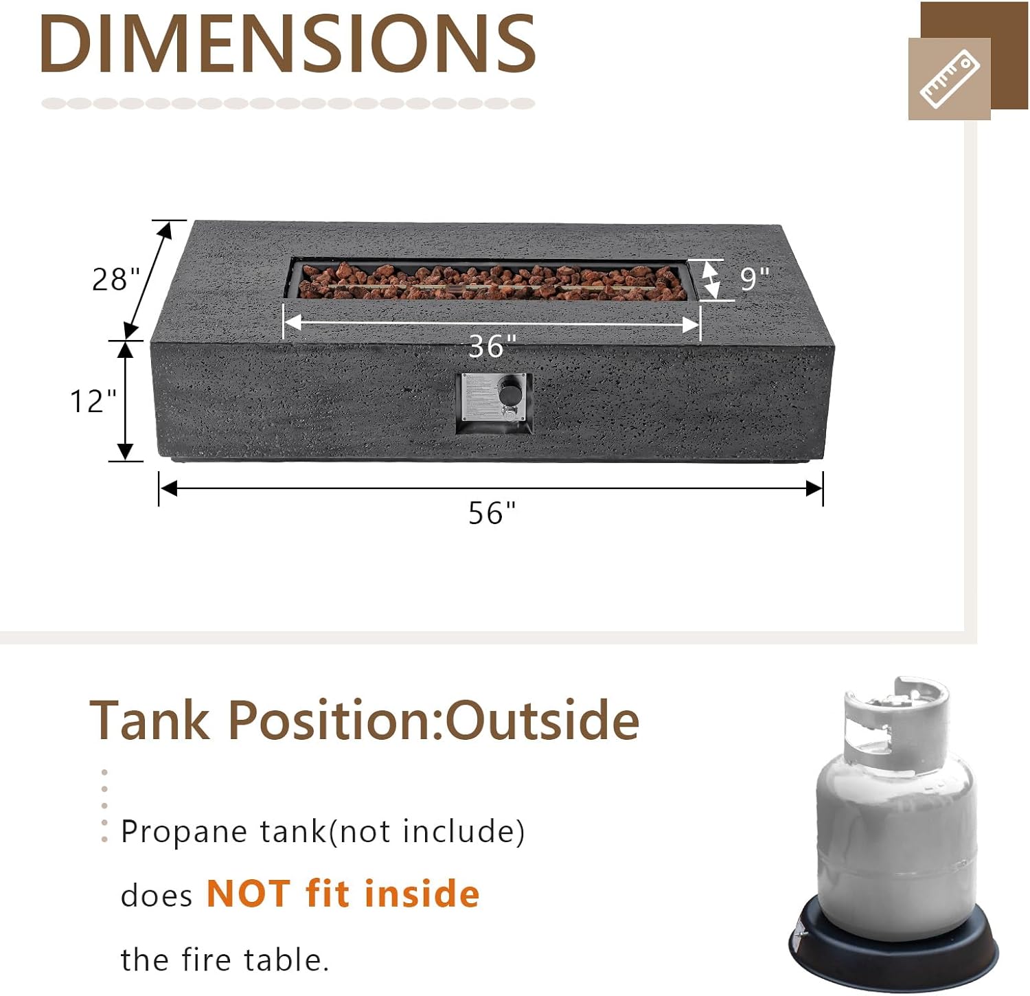 - 🔥【Spacial Economy】: Large enough coffee table surface to set your coffee or nightcap. The entire piece can easily be picked up from the side handles by two people. It fits a 20lb propane tank which should be put outside the fire table.