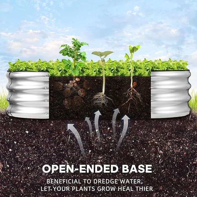 - Open base: This raised garden bed metal galvanized is designed with an open base, Sits on the ground garden bed which can effectively avoid water accumulation .