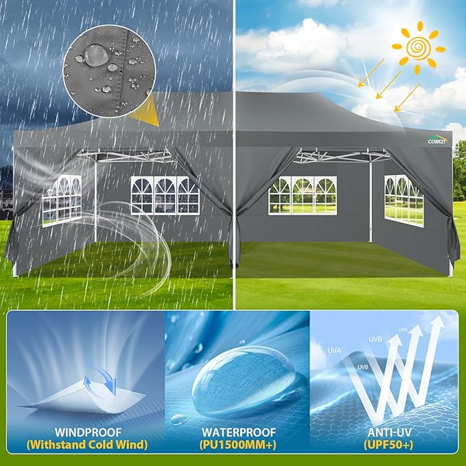 COBIZI 13x26 Pop Up Tent 13x26 Canopy with Sidewalls Heavy Duty Canopy Party Tent for Parties, Outdoor Wedding Large Event Tent Wind Waterproof UPF 50+ Ez Up in Garden Lawn with Roller Bag, Gray