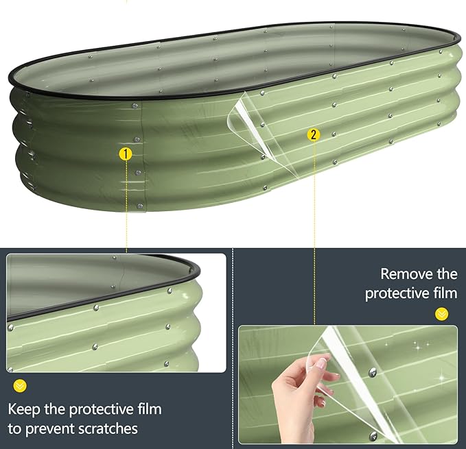 - Double Thickness Super Stability: The thickness of the planter box is 0.6 mm, and the thickest overlap of galvanized sheets can reach 1.2 mm.Adding screw fastening edge at the interface. Oval shape that won't deform allows it to hold a large amount of soil.