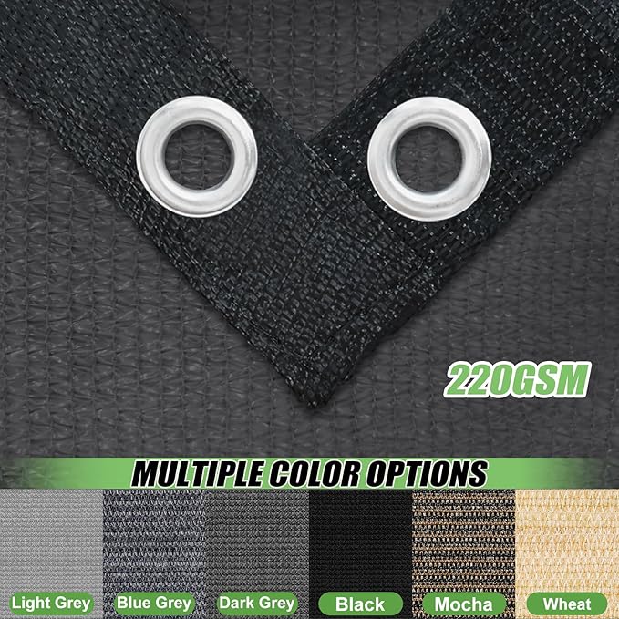 - [Durable & High Breathability] Pergola Shade Cover is made of 200 GSM HDPE with knitted construction, abrasion and tear resistant. Mesh Tarp ensures air circulation, dries quickly after being wetted by rain, no special drying or maintenance required, making it ideal for long-term outdoor use.