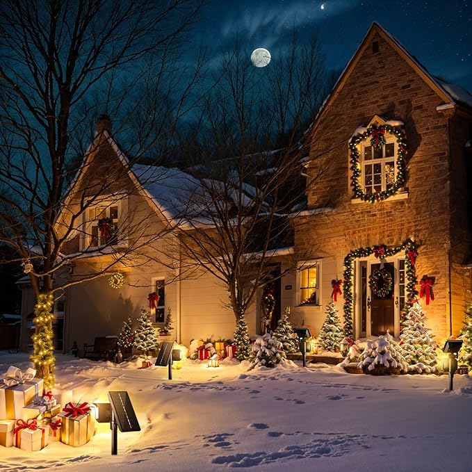 - Convenient Installation Options: You can use the Solar powered spot lights as solar garden lights . Hassle-free installation, convenient and portable. Stick it into the grass using the ground stakes and use it as a solar powered landscape spotlight. See every part of your yard – even your dogs chasing a gang.