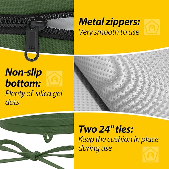 - Wide Use & Tips: These outdoor dining chair cushions fit pools, patios, balconies, decks, backyards, and gazebos. Foam inserts and covers are packed separately in bags and placed in one box—check all parts. Easy assembly required
