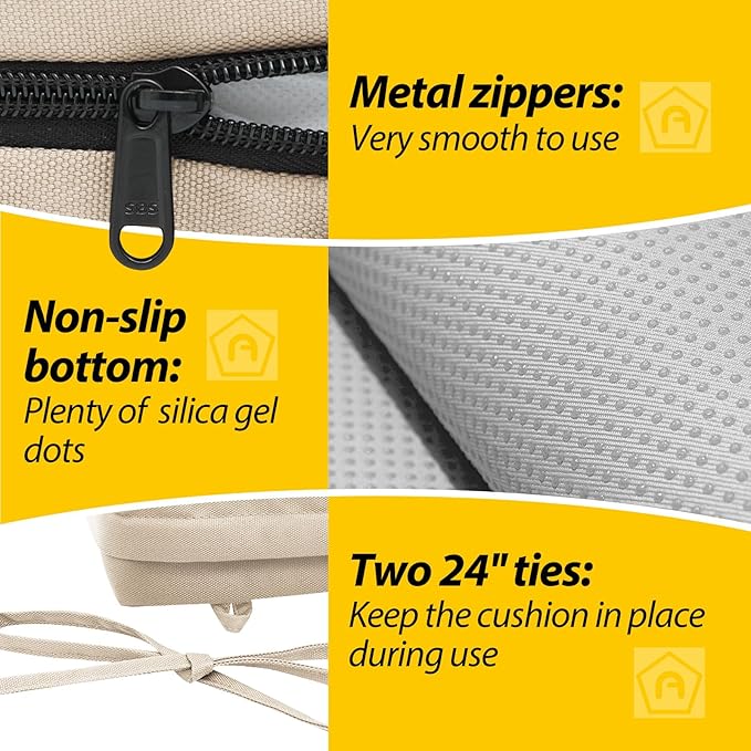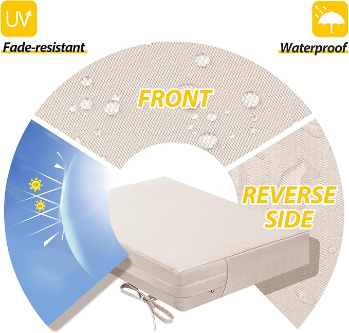 - Waterproof & Removable Cover: Durable, breathable polyester with a waterproof coating, UV protection, and fade resistance for lasting outdoor use. The zippered cover allows easy cleaning and replacement, with hidden zippers for a seamless look