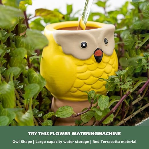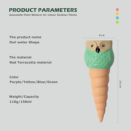 - Perfect and economical choice--The package includes 4 watering stakes.The size of one spike is 6.4” long and the weight for one spike is 3.88 oz.Cute owl shape design.These plant watering devices not only provide functionality but also add a touch of charm to your planters.