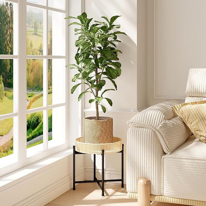 Bamworld Rattan Plant Stand Indoor,Small Boho Plant Table for Large Plants,Heavy Duty Plant Holder for Living Room Bedroom