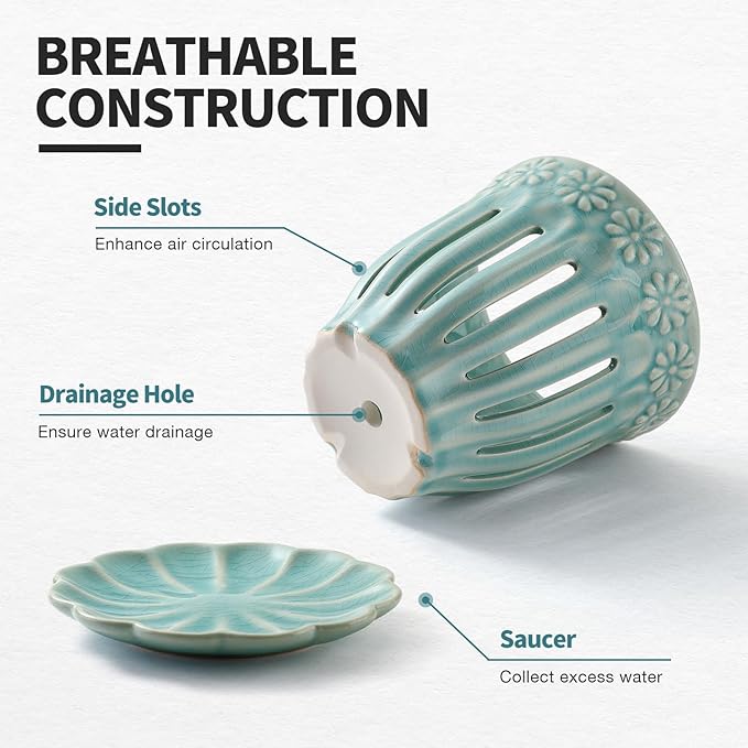 - 【Elegant Design】Unique carved patterns make this orchid pot stand out. Fully glazed with improved air circulation through aeration holes on the front and back.