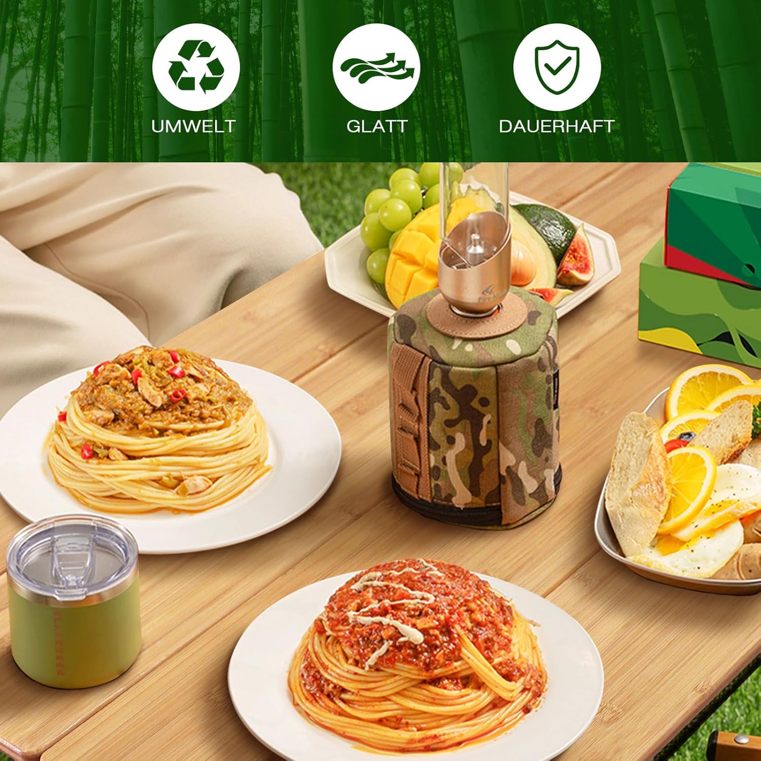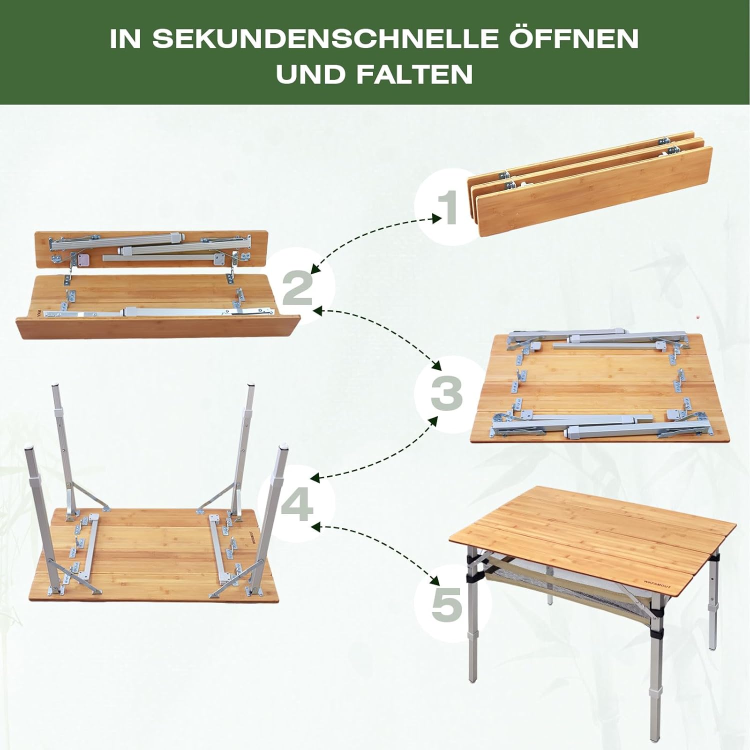 - Folding Camping Table: Crafted from high-quality natural bamboo, our table is eco-friendly, renewable, and visually appealing. It is sturdy, and durable, enhancing its lifespan.Additionally, we offer a 365-DAY GUARANTEE. If you have any issues or concerns, our dedicated customer service team is here to help you. We are committed to ensuring your satisfaction with our table.