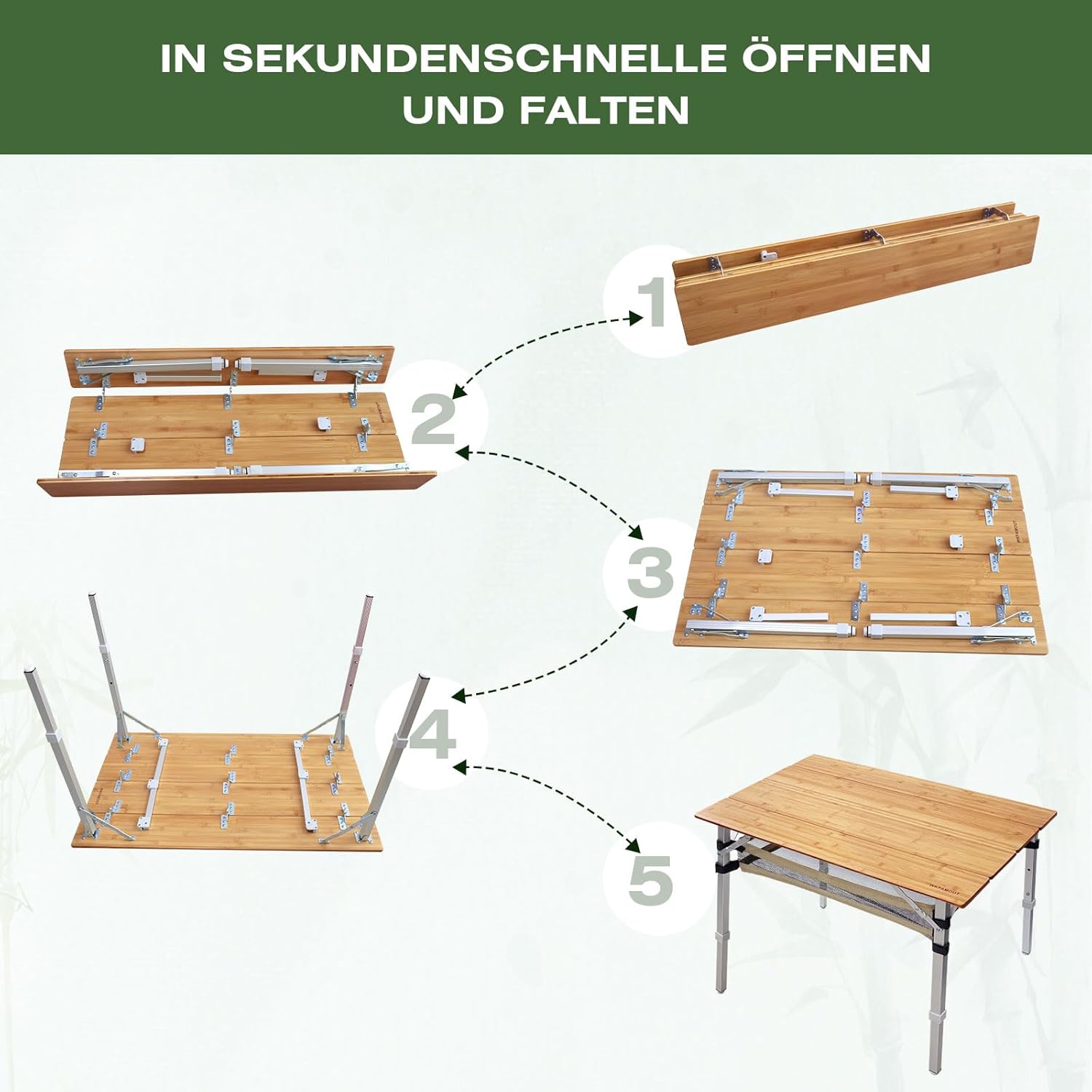 - Folding Camping Table: Crafted from high-quality natural bamboo, our table is eco-friendly, renewable, and visually appealing. It is sturdy, and durable, enhancing its lifespan.Additionally, we offer a 365-DAY GUARANTEE. If you have any issues or concerns, our dedicated customer service team is here to help you. We are committed to ensuring your satisfaction with our table.