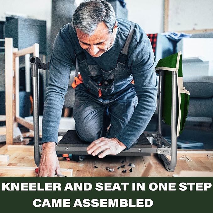 - KNEELER AND SEAT IN ONE STEP & CAME ASSEMBLED! Get a whopping 14X10 IN wide of seat vs. the standard 10X5 IN with our unique Upgraded widened Thick Kneeling Pad! This kneeler is super easy to store thanks to a quick folding mechanism.No messing around just fold and go.This kneeler is complete with a snap-lock that ensures it stays shut when it's flipped and used as a garden stool. So whether you are kneeling on the ground to prune weeding and planting.Aimerla Kneeler will hit your sweet spot!