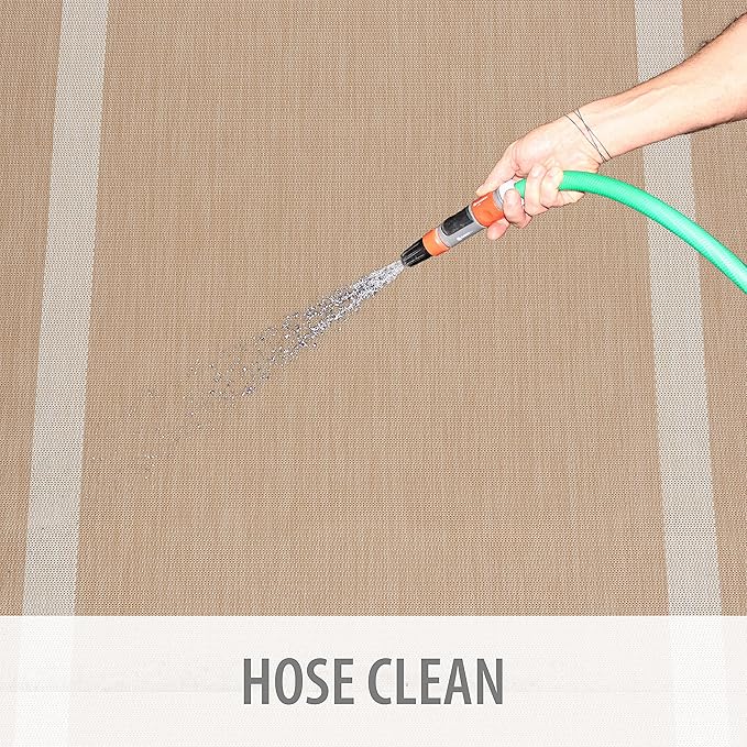 - [ WASHABLE: ] You can vacuum with a vacuum cleaner indoors and you can wash with a hose outdoors. To wash an outdoor rug, spray the surface with a 5-1 mixture of mild dish soap and water and then rise with a hose.