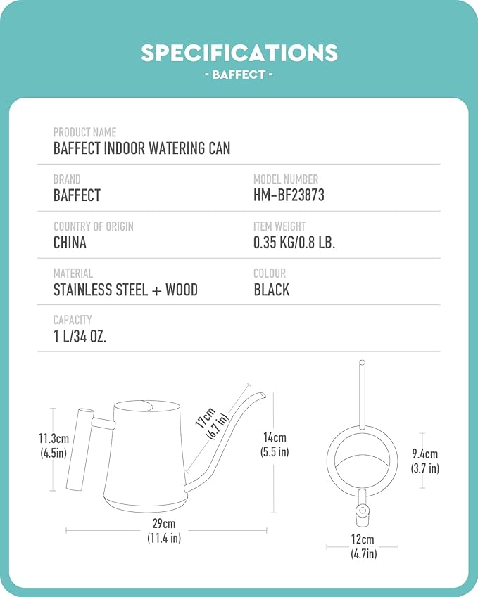 - Ideal capacity - The capacity of Baffect Indoor Watering Can is 1.2L/41oz, making it ideal for watering small houseplants. With its ideal capacity, this metal watering can allows you to water multiple small bonsai without frequent refilling
