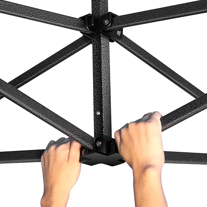 - 【Quick & Easy Setup】10x10 Easy Setup tent can be quickly installed and dismantled by 1-2 people in minutes without tools, easily accommodates 10-15 people. Simply take the fully assembled frame out of the bag, place the fabric over it, stretch legs and done. You can adjust heavy duty canopy in 3 different heights (84", 88", 91") according to your needs with thumb button to provide enough headspace. Upgraded thumb latch system is easy to lock and release, protecting fingers from pinching