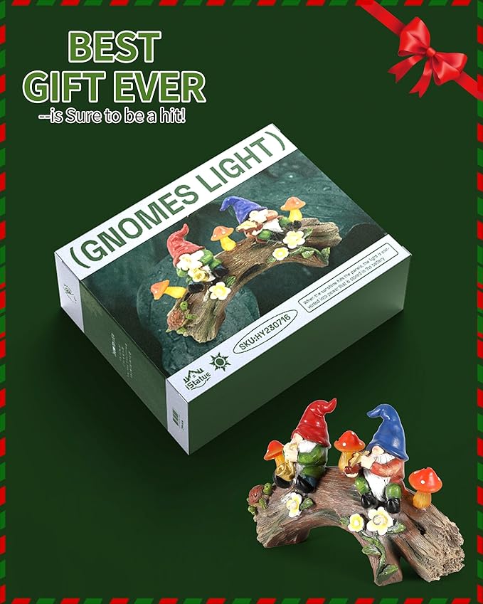 - ☀️Solar Powered Magical Glow - As darkness envelops the garden, the gnomes’ instruments emit a soft, enchanting glow. Imagine the melodies echoing through the moonlit night!