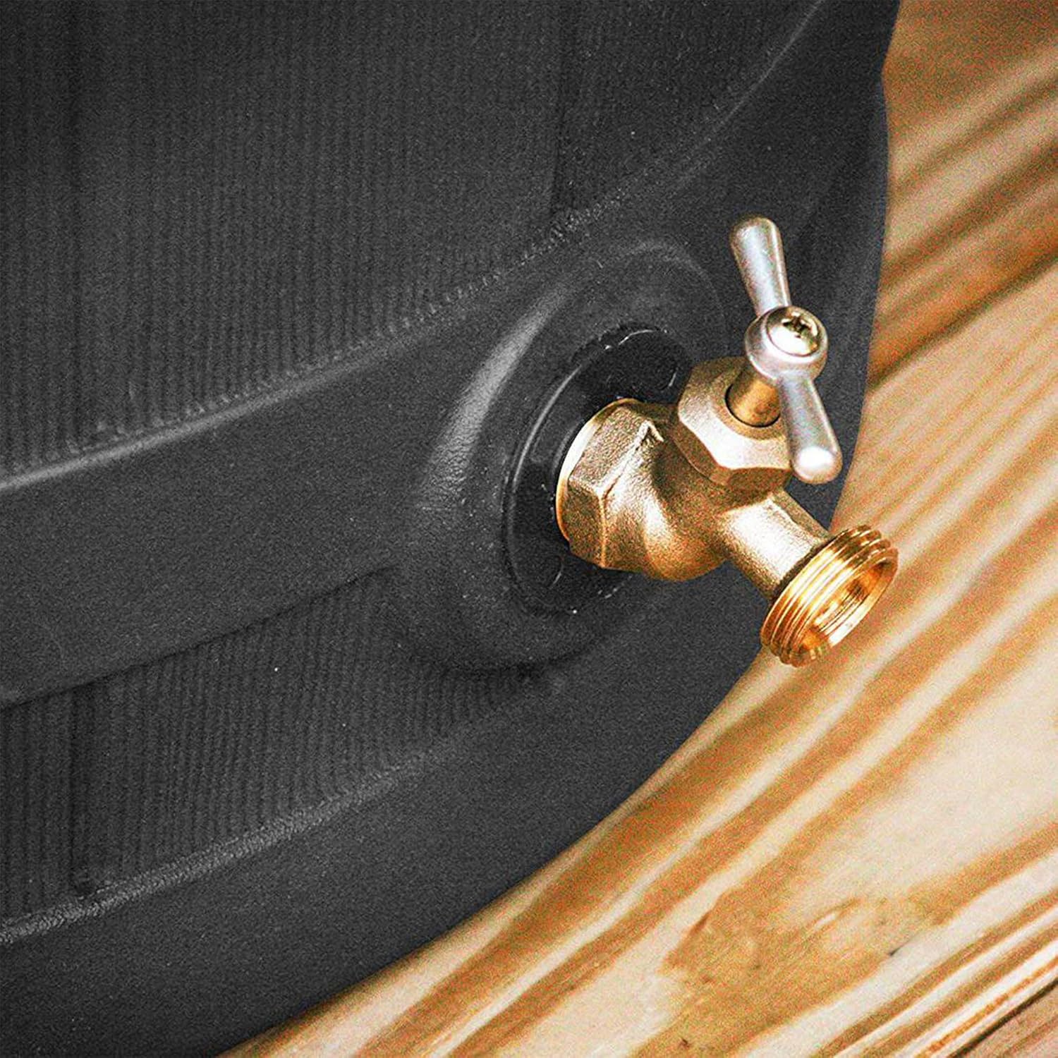 - Right Fit: Includes brass spigot so you can easily connect your hose or for use as an overflow spout; Fits right under your gutter system and features a screen to keep out debris and insects; Capacity: 50 gallons